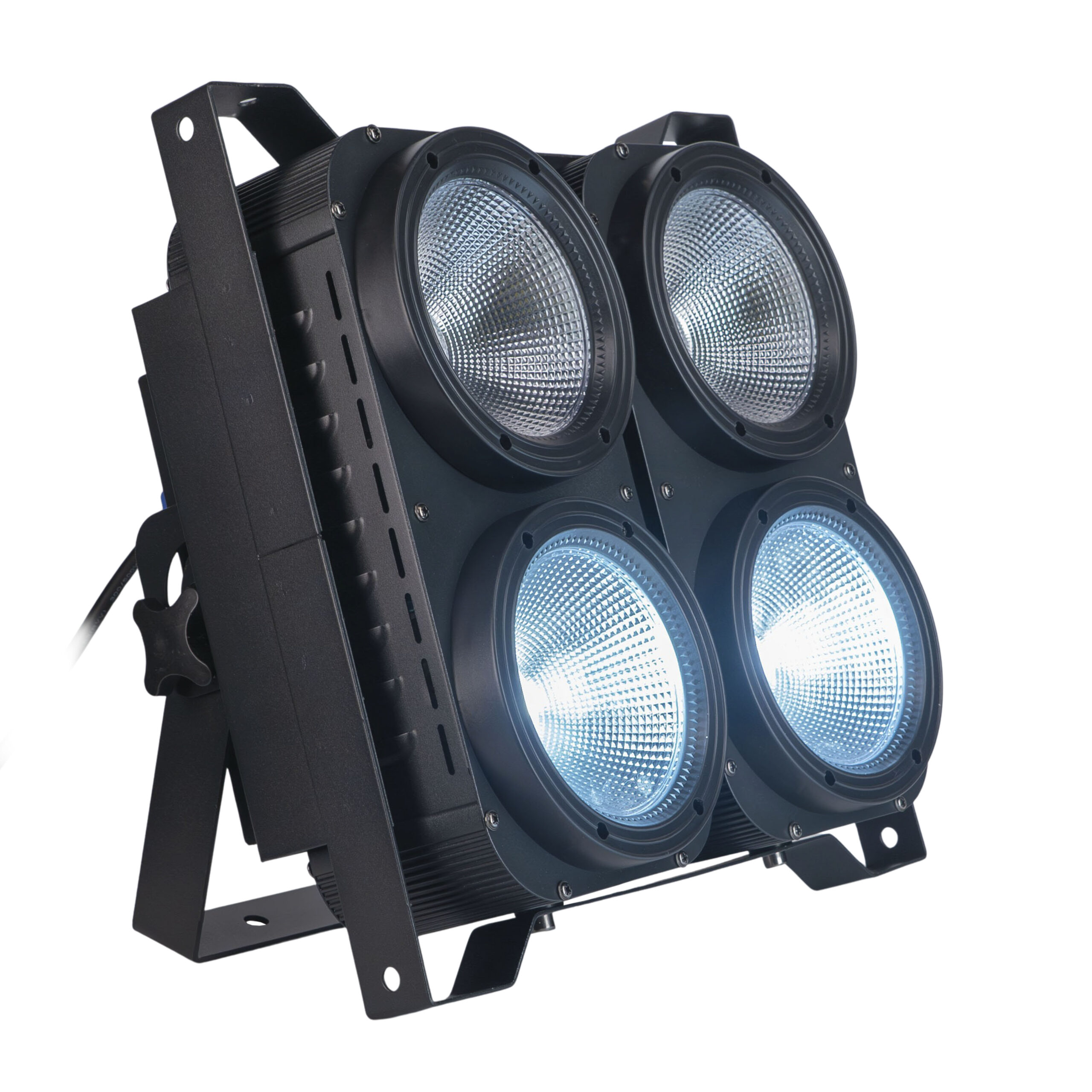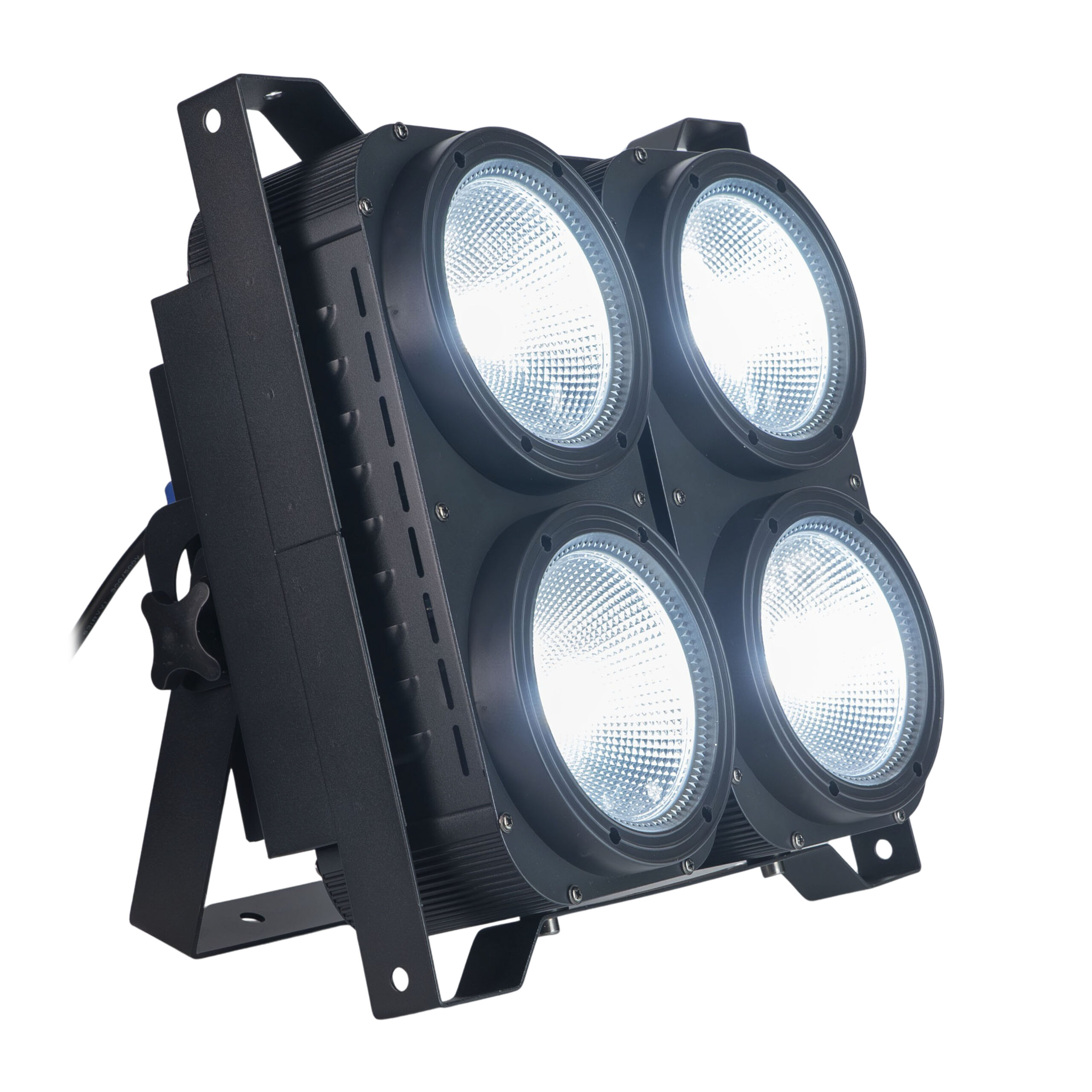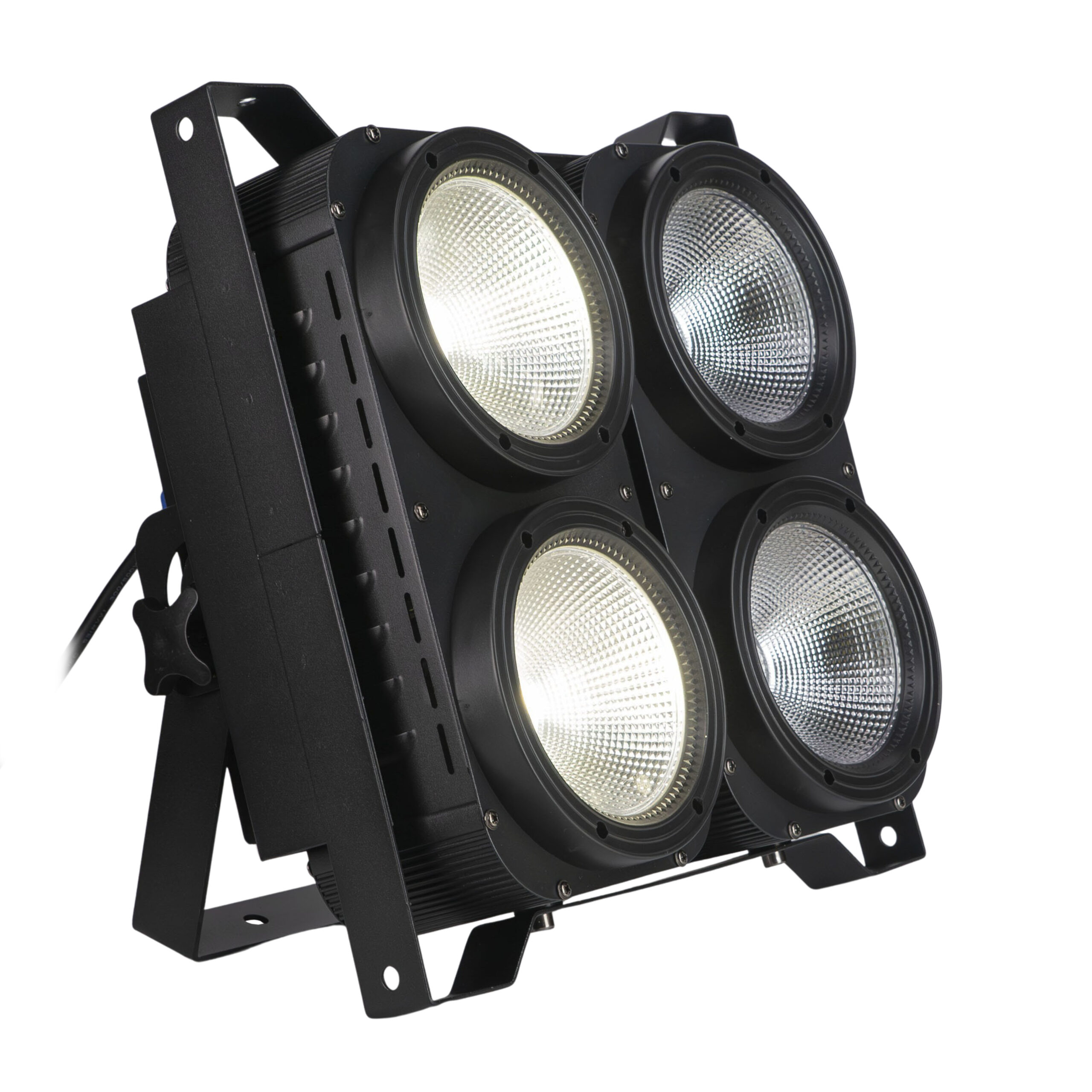 The QFlash COB 400 LED blinder is a professional 400W fixture with warm white output, equipped with four high-power 100W COB LEDs.