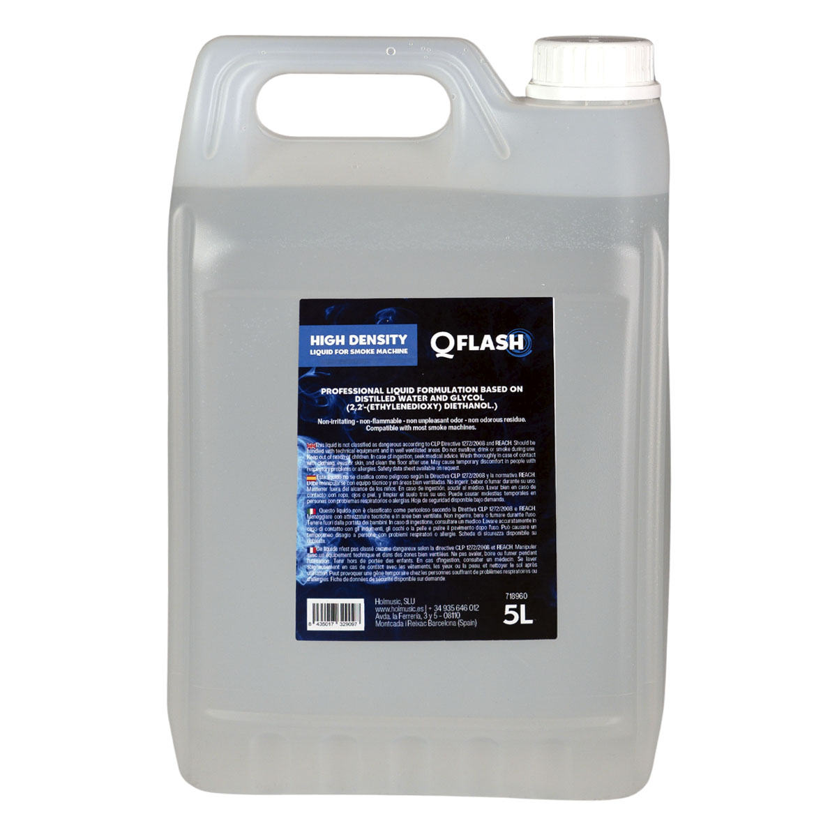 Presented in 5-liter jerrycans, it is designed for any conventional smoke machine.