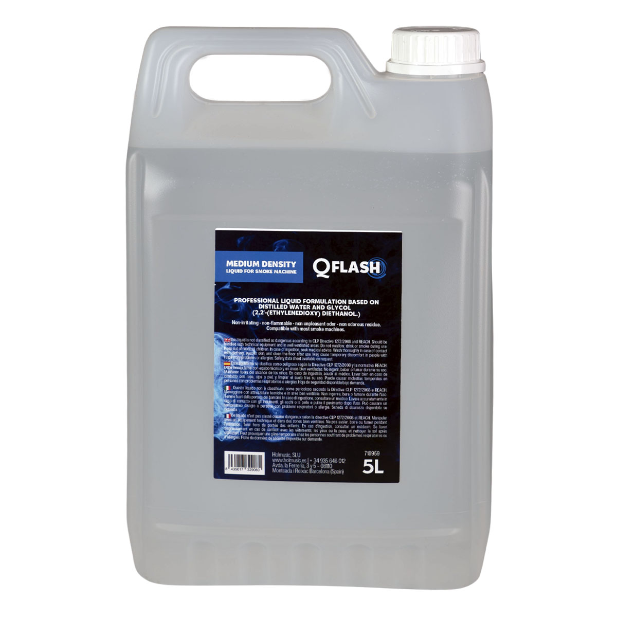 Presented in 5-liter jerrycans, it is designed for any conventional smoke machine.