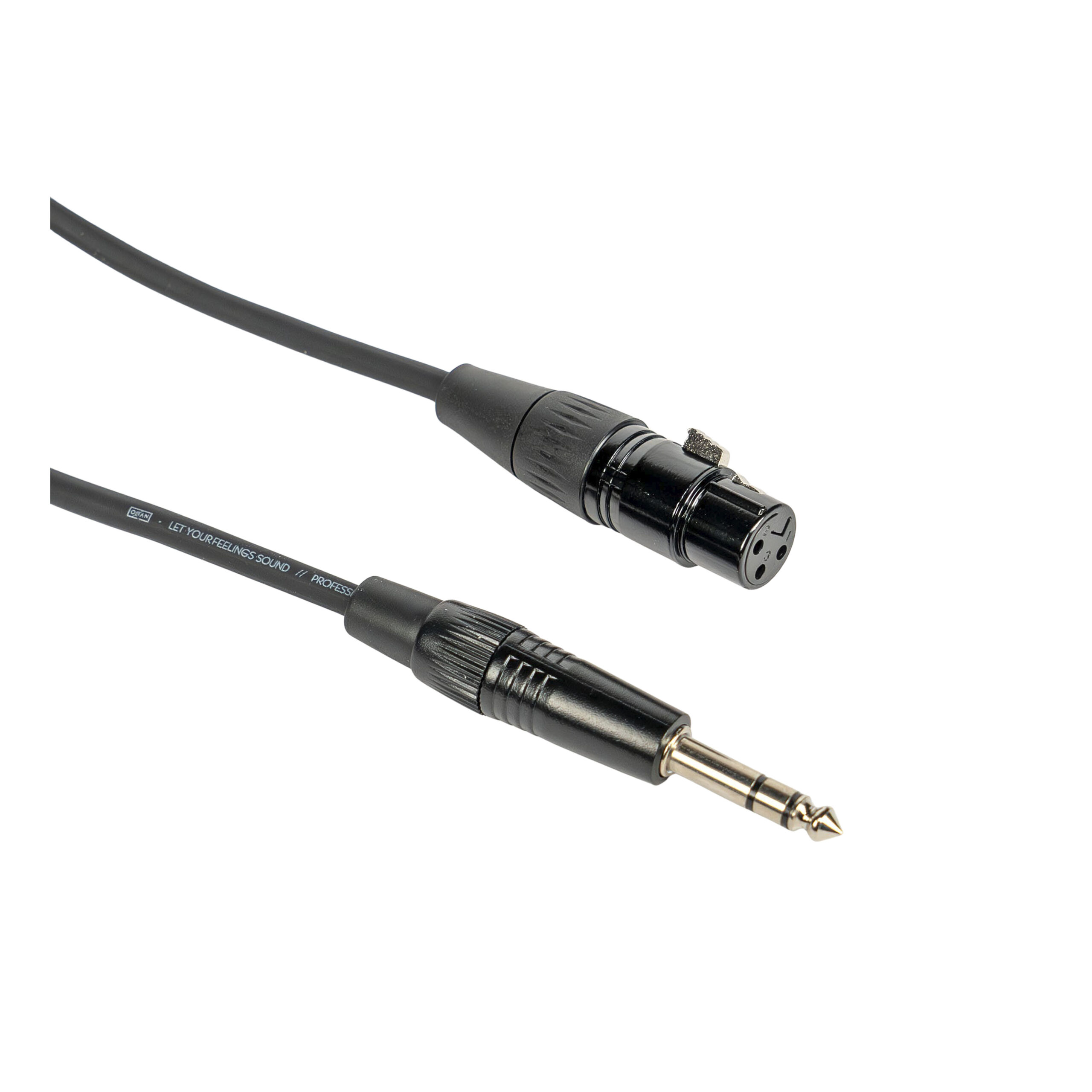 A female XLR to male TRS jack cable is used for balanced audio signal transmission without loss, in various professional applications, both for stage and home studio use.